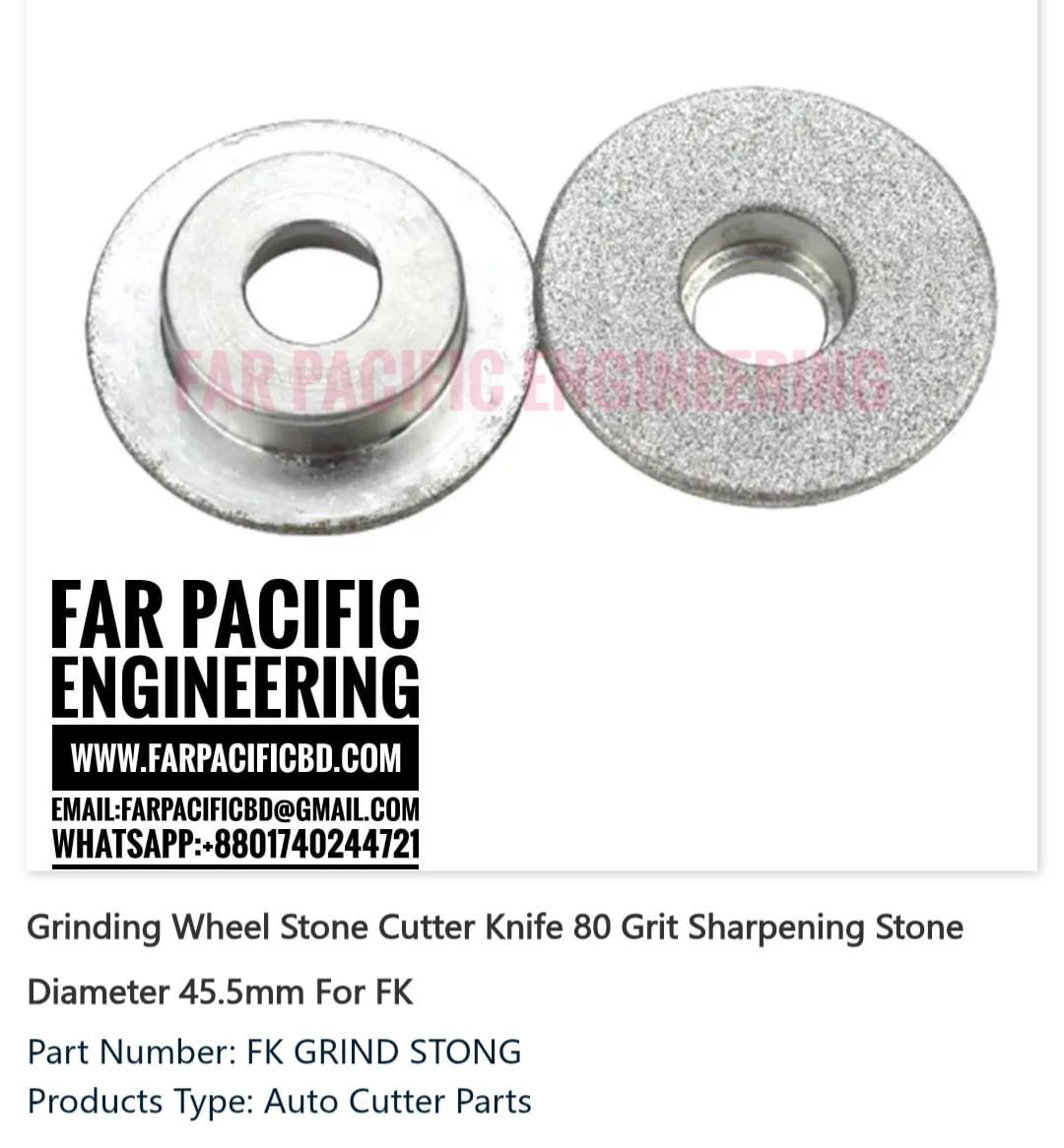 👉 In short: This is a 45.5mm, 80 grit grinding wheel stone for FK Auto Cutter Machines, used as a consumable sharpening part for cutter knives.